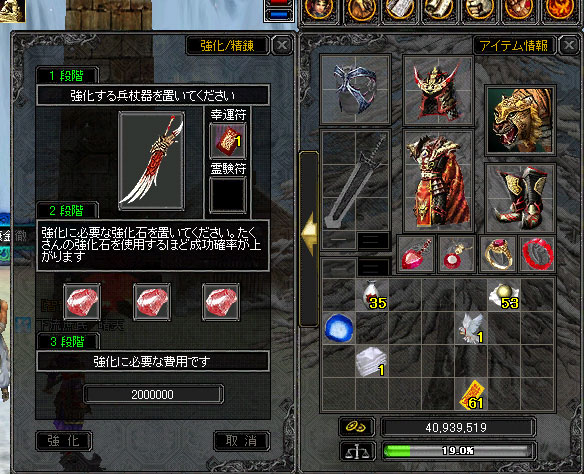早速ピンク石1個幸運符1枚にて強化。。。。。。。。。